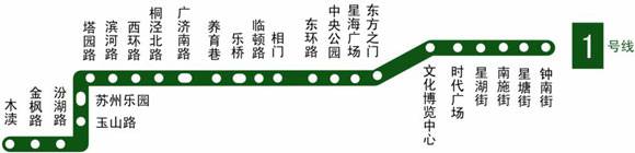 軌道交通一號(hào)線是一條東西走向線路,起點(diǎn)位于吳中區(qū)木瀆鎮(zhèn)北側(cè)的金山路,止于蘇州工業(yè)園區(qū)鐘南街,沿途設(shè)24個(gè)地下站點(diǎn),途經(jīng)吳中區(qū)、高新區(qū)、市區(qū)和工業(yè)園區(qū)。