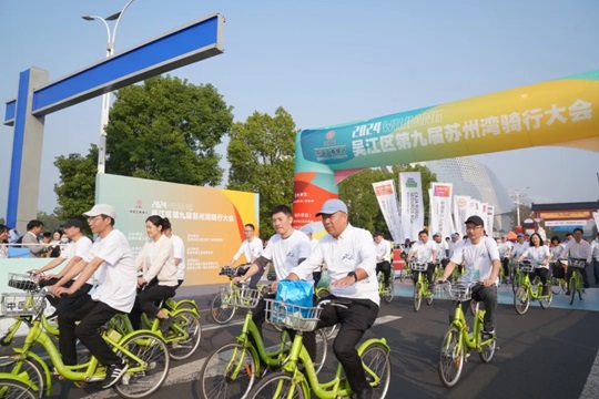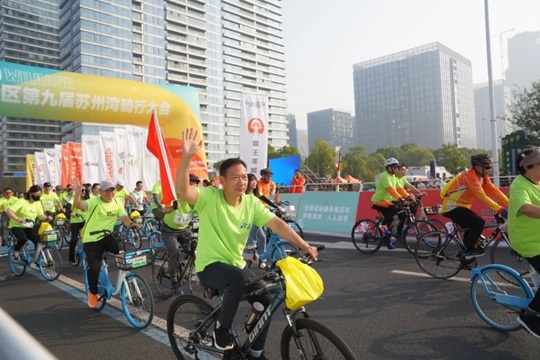 天朗氣清,湖波蕩漾,在全國(guó)場(chǎng)地自行車錦標(biāo)賽冠軍唐佳雯、沈燕的鳴笛發(fā)令下,騎行正式開始。榮譽(yù)騎行隊(duì)和大眾騎行隊(duì)先后出發(fā),以湖景街東太湖大道路口為起點(diǎn),沿太湖而行,領(lǐng)略灣區(qū)魅力,感受新城風(fēng)光。
